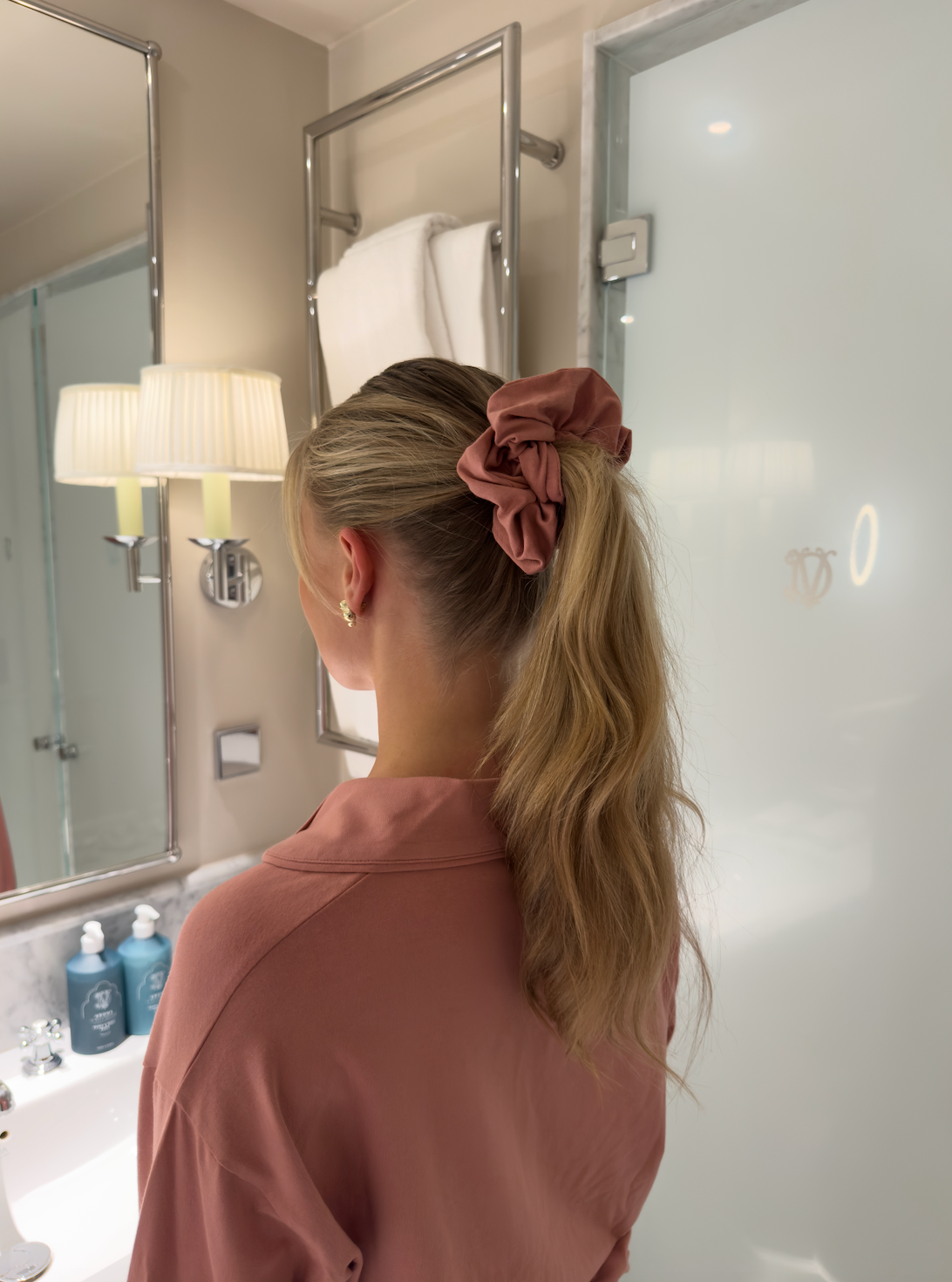 Our scrunchies are made from the same soft modal-cotton blend as our pyjamas, designed to be gentle on hair while providing a comfortable, flexible hold.